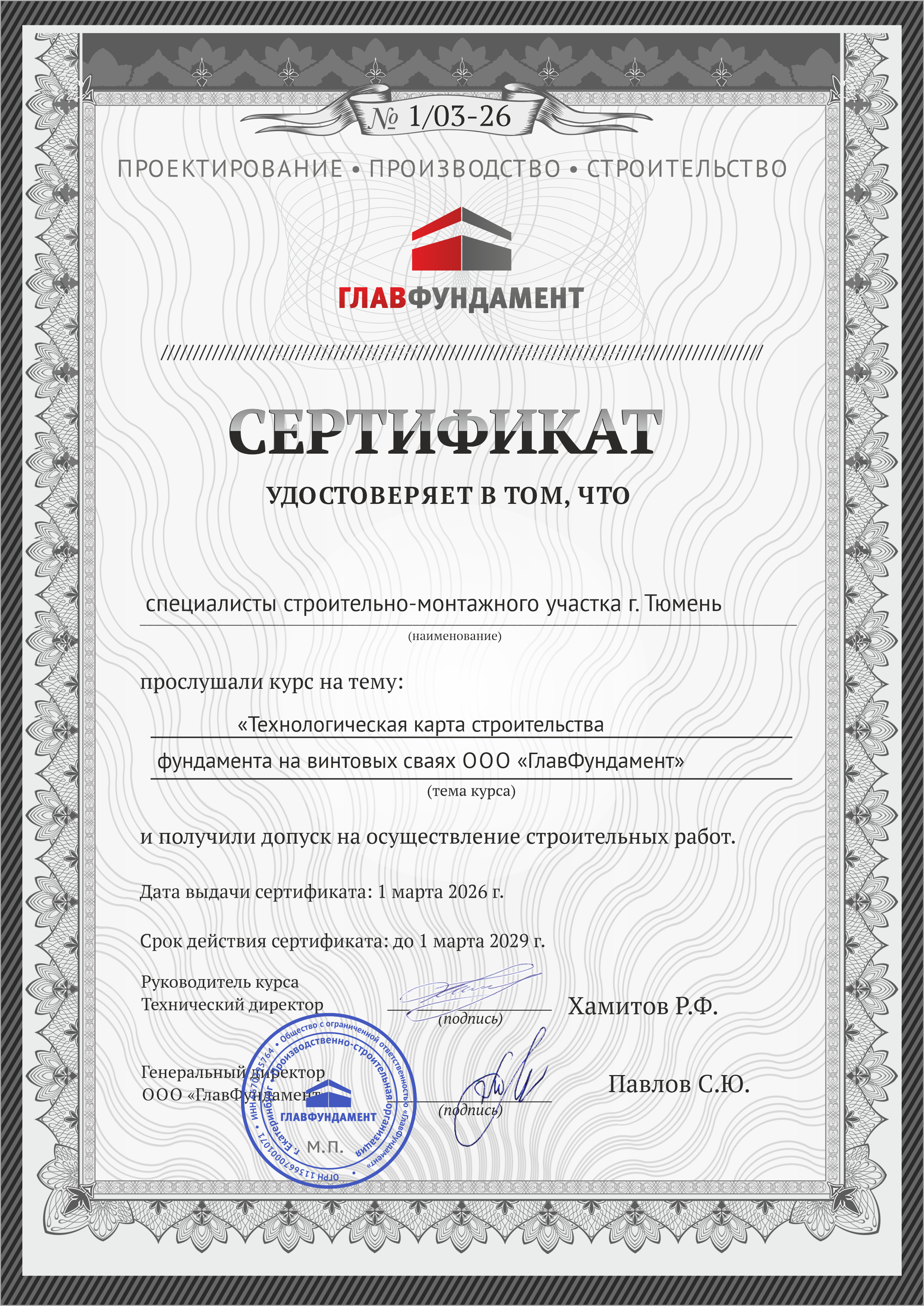 • Гарантийный сертификат на 25, 50 и более лет (после выполнения расчета срока службы, изучения геологических условий в Тюмени в пятне застройки и измерения коррозионной агрессивности грунтов).